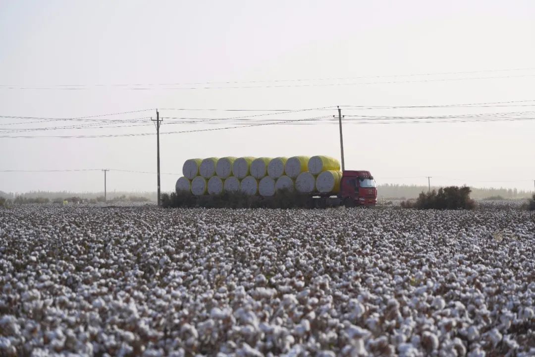 ▲新疆阿克蘇·運送棉包的貨車